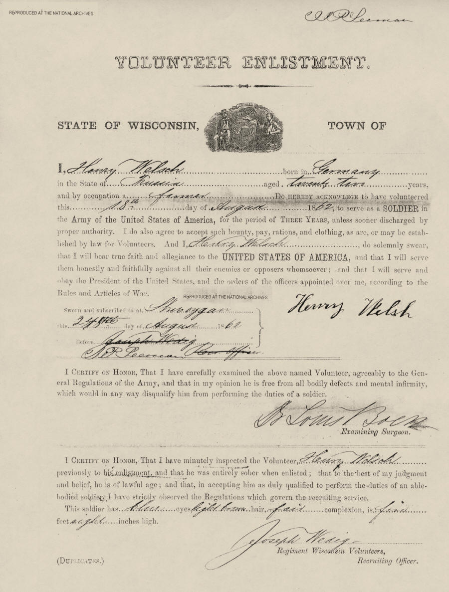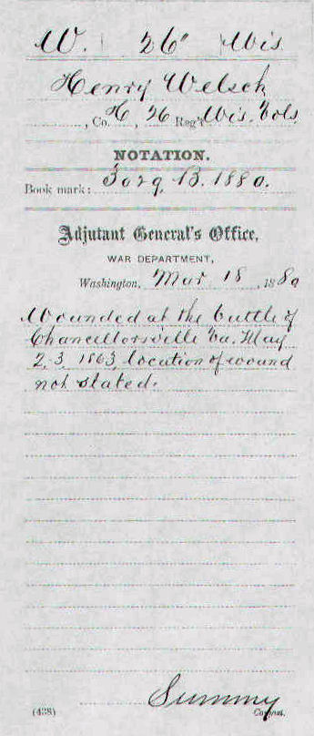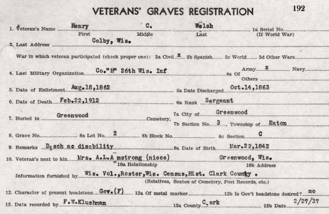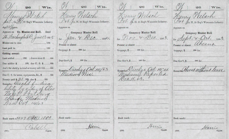 ***Henry C. Welsch is also featured in the book, "Civil War Soldiers in the heart of Clark Co., Wisconsin."