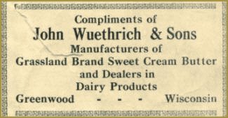 John Wuethrich learned the art of cheese making from his father, and came with the rest of the family, to the United States in 1892. There were six children all told-Karl, Fred, John, Alfred, Catherine and Rose, the youngest being 2 years old, and the eldest 14. John was then a boy of 11. They located at Woodland, Dodge County, Wis., where Samuel Wuethrich engaged in cheese making. A cousin, Chris Gassner, who had come to this country some ten years before, was one of their neighbors. The father continued working there, and also for a time at Mayville, until he had saved some money, when he bought a farm in the vicinity. He died there at the age of 71 years, and was survived by his wife, who is now living at Iron Ridge, Wis., being 64 years old.