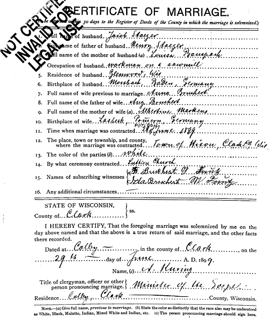Jacob and Anna (Bruchert) Steager Wed June 28, 1899.