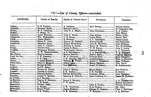 In 1865, Gustavus Sterns served as Clerk of the Circut Court for Clark Co., Wisconsin.