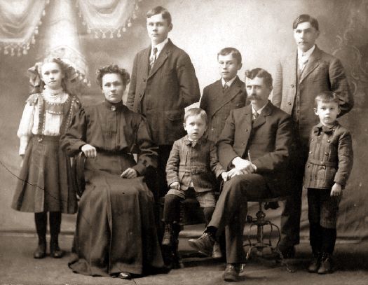 Left to Right: Alma Agnes, Alwina, Calvin, Herold Gilbert, Adolf Ludwig, August Karl, Friedrich August & Herold Gilbert. |
