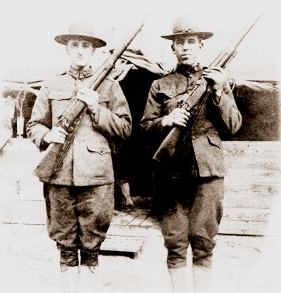 Henry Melvm Myrin (the soldier on the right) was born May 3,1895 in the Town of Reseburg, Clark Co., Wisconsin to Andrew and Anna (Stigen) Myrin.