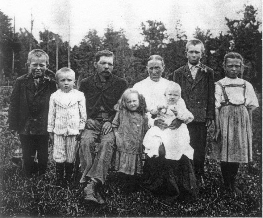 Gilbertson Family; Ole, Melvin, Christ, Kela, Mattie with Hulver, Adolph, Martha (Harmel) |