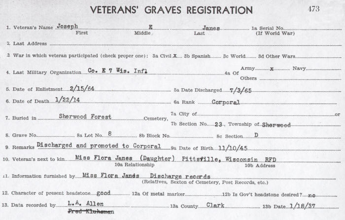 shortened to Sherwood), Clark Co., Wisconsin. Joseph was born in 1845 in