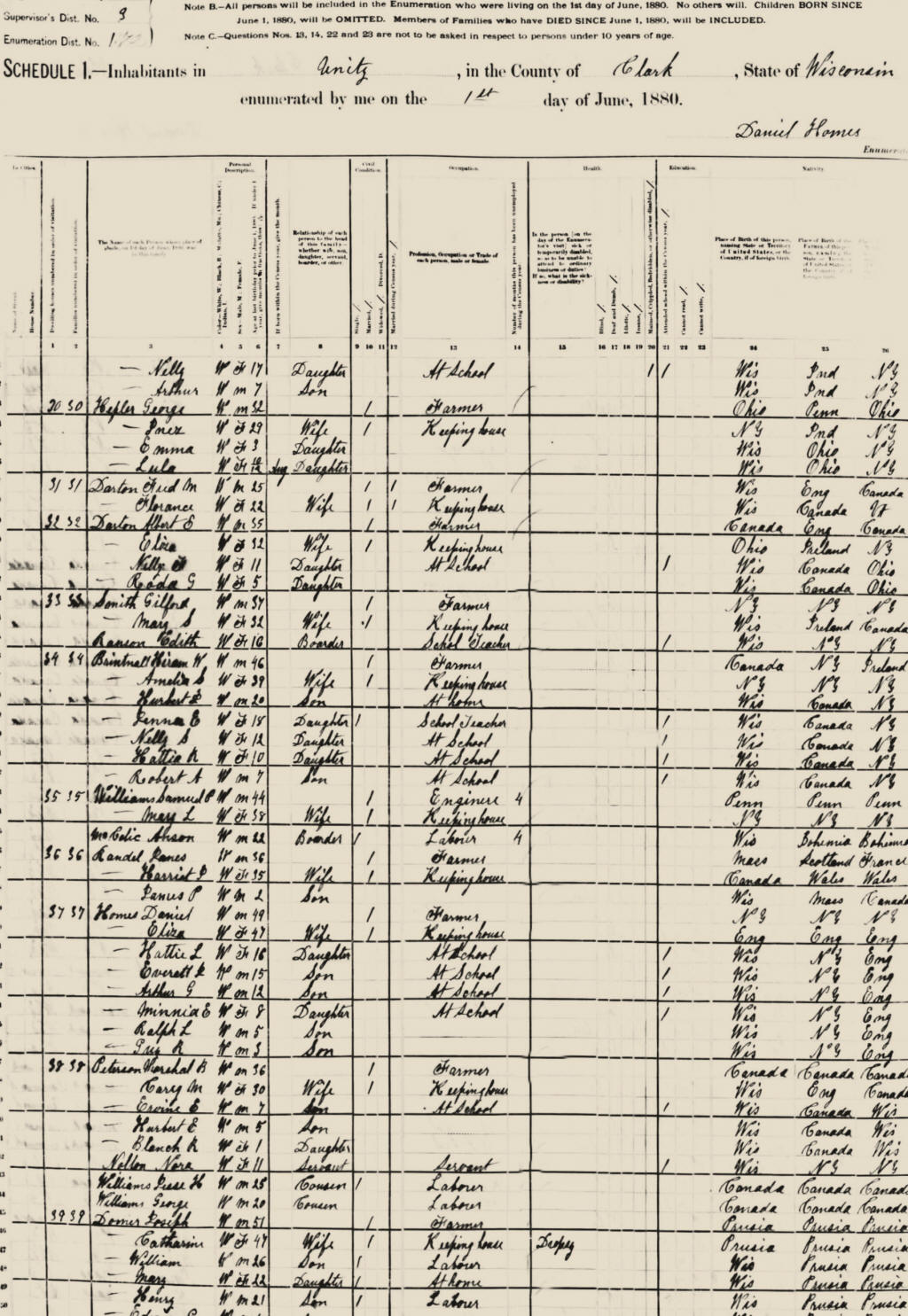 1880 Federal Census--Unity, Clark, Wisconsin |