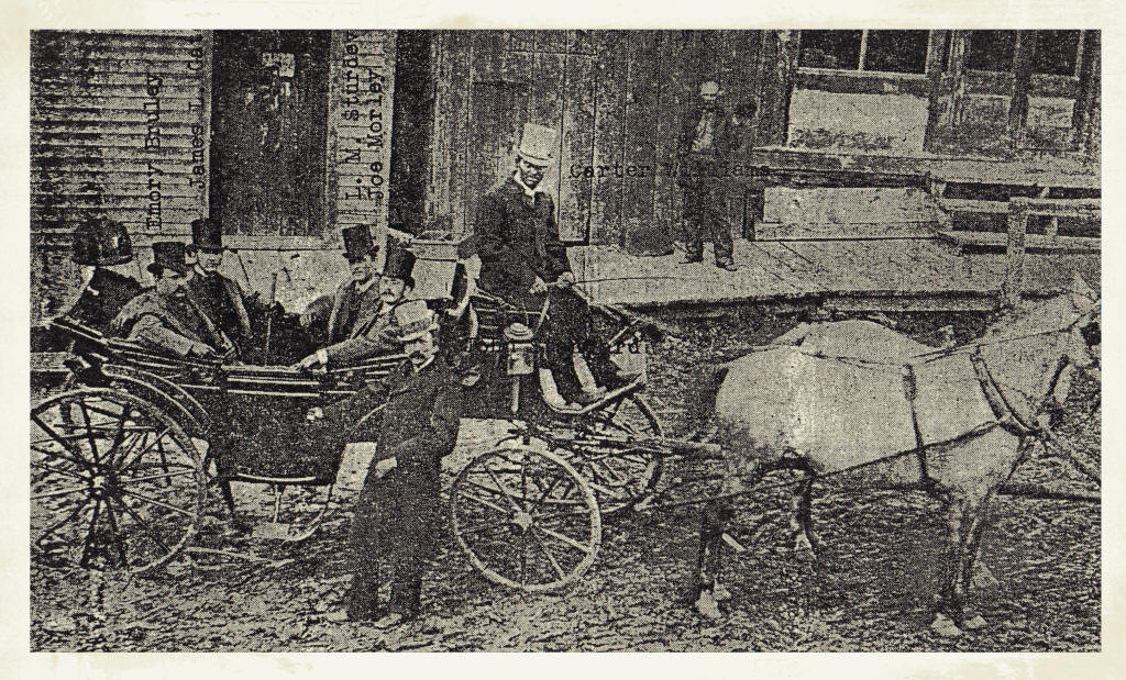 Forefront: Carter Williams Back Seat: Front, Emery Bruley, Rear, James L. Gates Front Seat: Front, Joseph Morley, Rear, L. M. Sturdevant. Driver: John Stannard Loading Dock: Unknown |