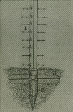 The steel fence post, patented by Emery Bruley, manufactured and sold throughout our country and Europe in the early 1900’s. The 4 to 6 foot Bessemer Steel Post, Figure 2, represents the base, made of wrought iron tubing, 18 or 24 inches long, with one end pointed. Figure 3 is an iron brace 12 by 3 inches, which was only necessary in very wet ground. The weight of the post, complete, was 10 pounds.