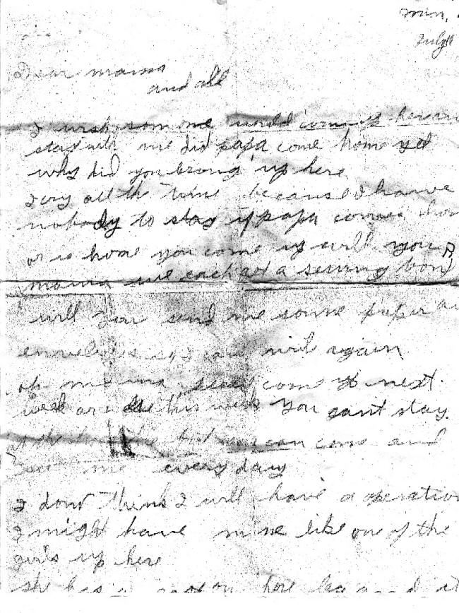 Written from Shriner's Hospital, Marshfield, WI @ 10 yrs.