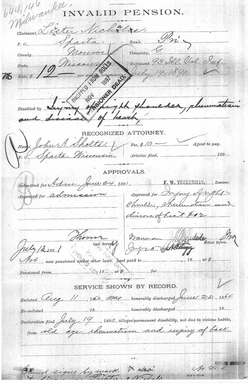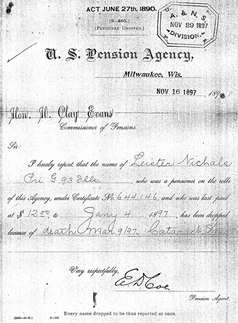 the time of the 1890 Veterans Census. July 19th of that same year, he
