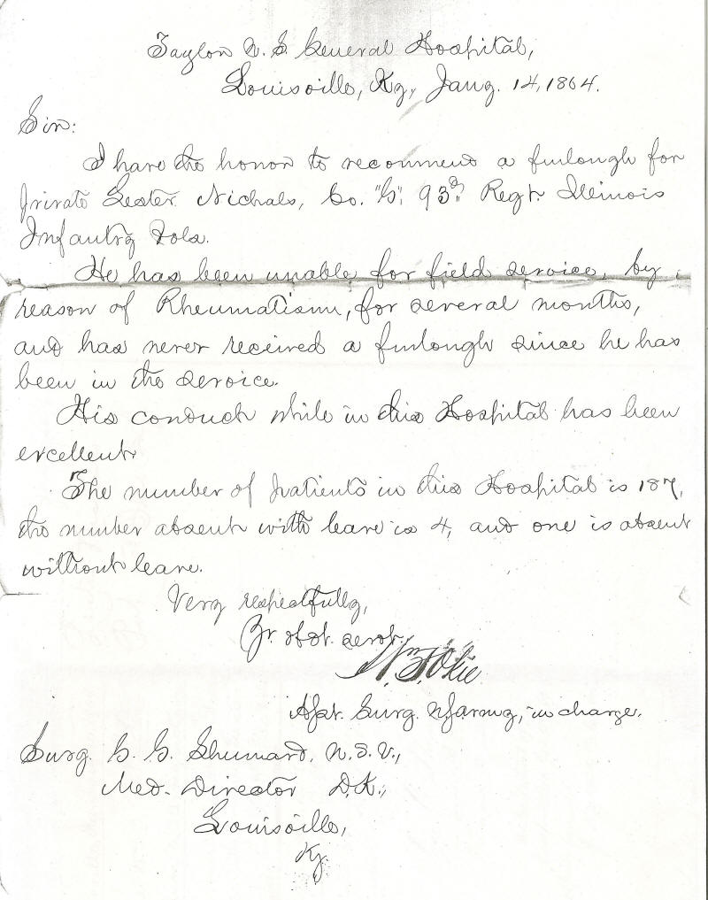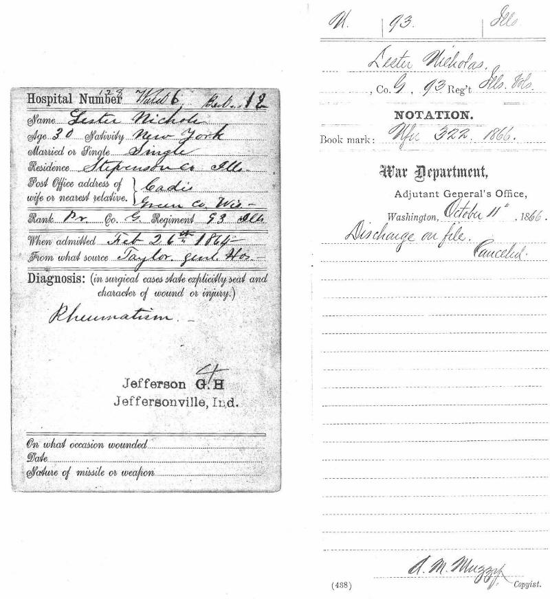 13 Nov 1863." A medical record from Jefferson Gen. Hos., Jeffersonville,