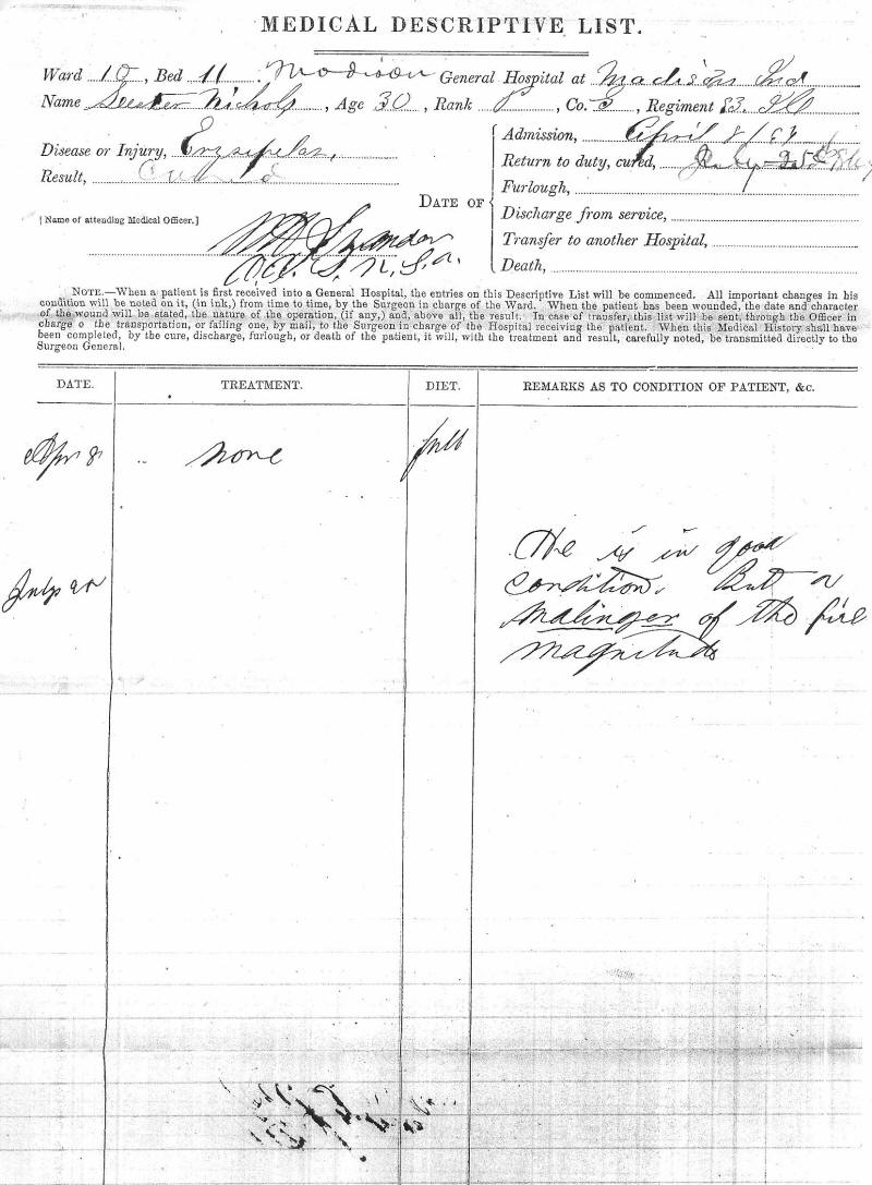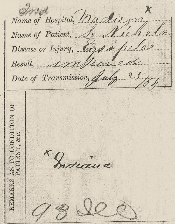 Madison, IN, for the period 8 Apr-25 Jul ’64 declares him cured of "enzsipelas",