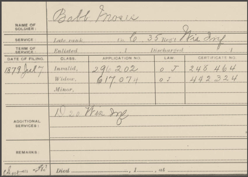 to the 35th Wisconsin Infantry on July 12, 1865 and was