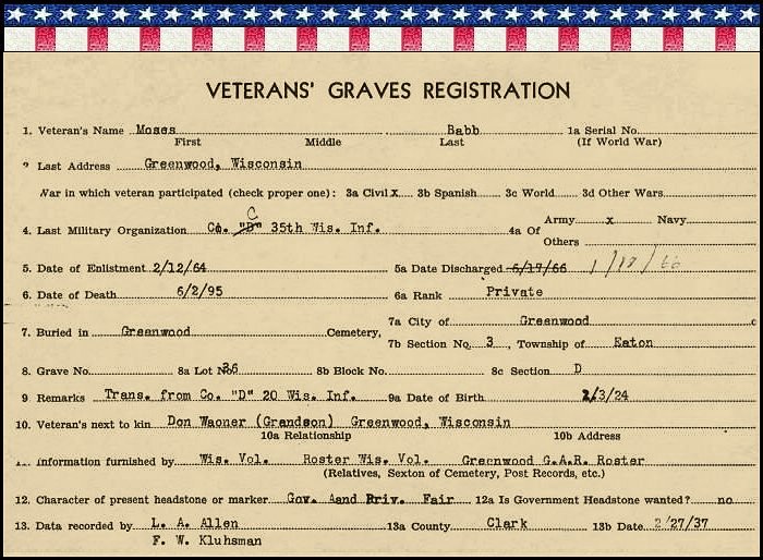 Eugene Babb buried in the Poor Farm Cemetery in York Township, Clark County,