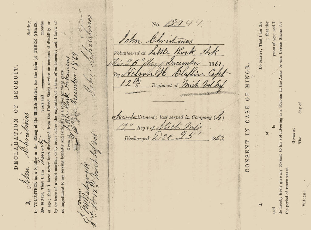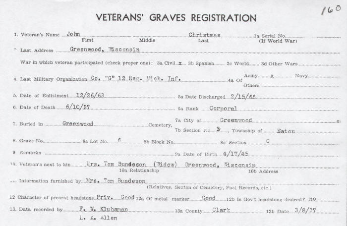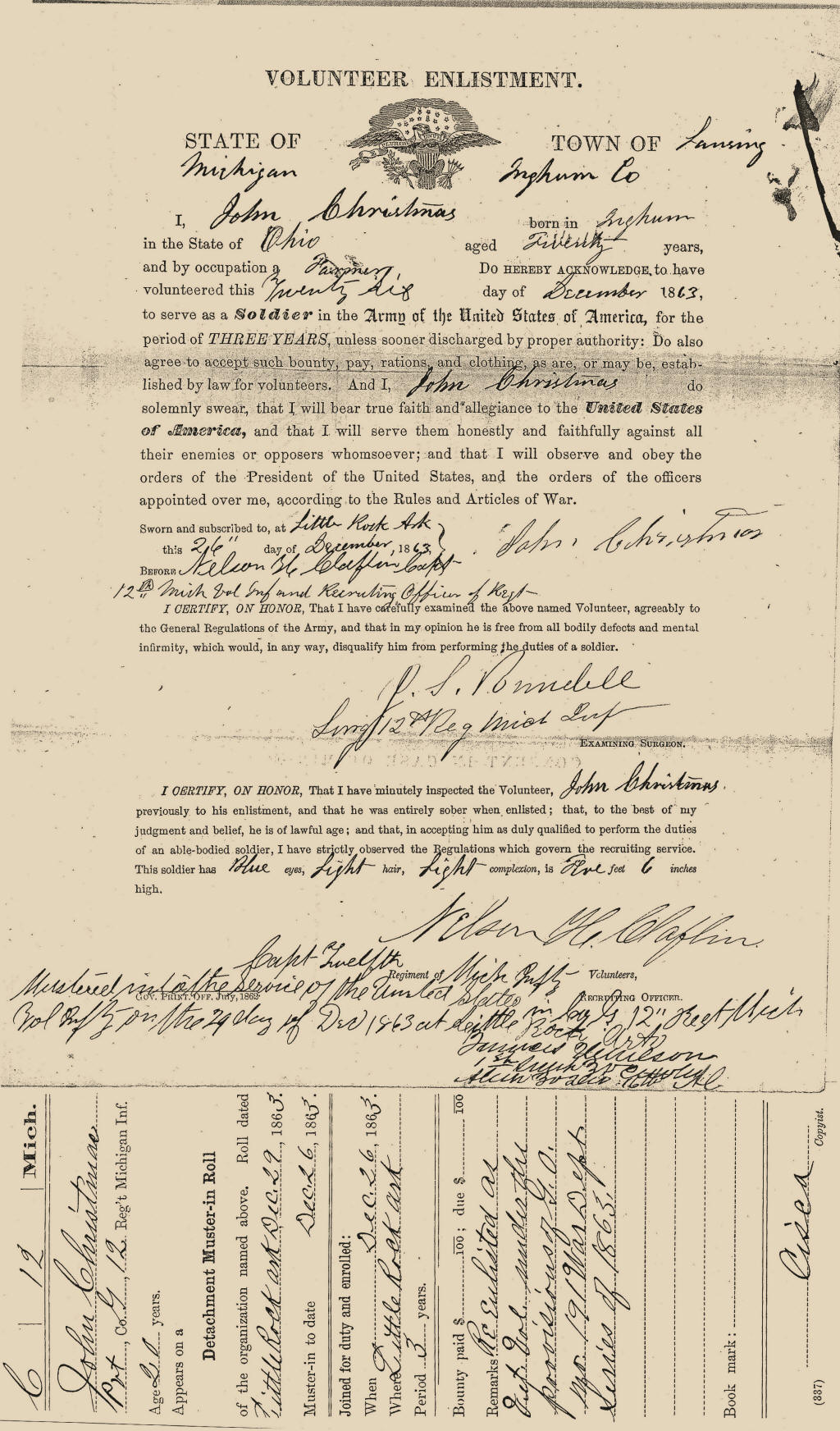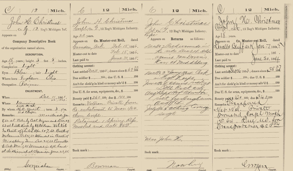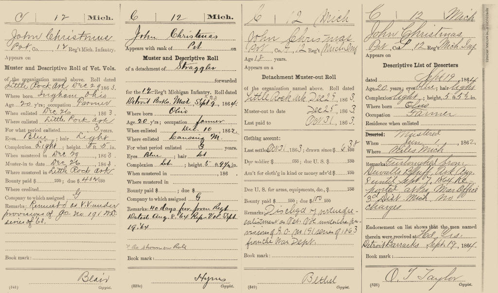 born 17 April 1845 in Sandusky, OH, the son of John and Adaline Christmas.