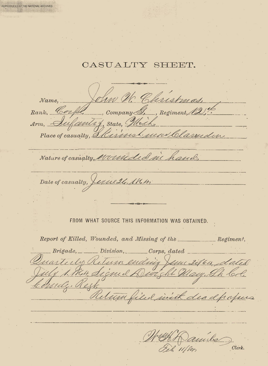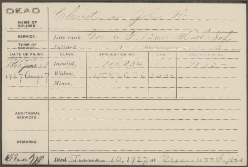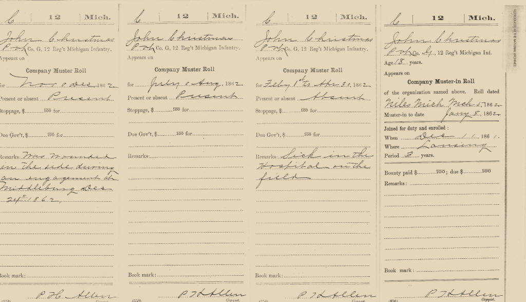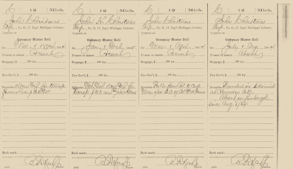 born 17 April 1845 in Sandusky, OH, the son of John and Adaline Christmas.