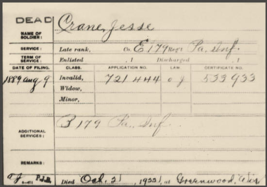 Jesse C. Crane Co. B 179th Penn Inf