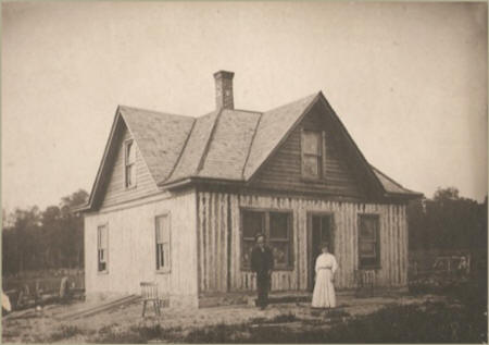 Inabelle, standing in front of the Patten farm home at the Township Worden,