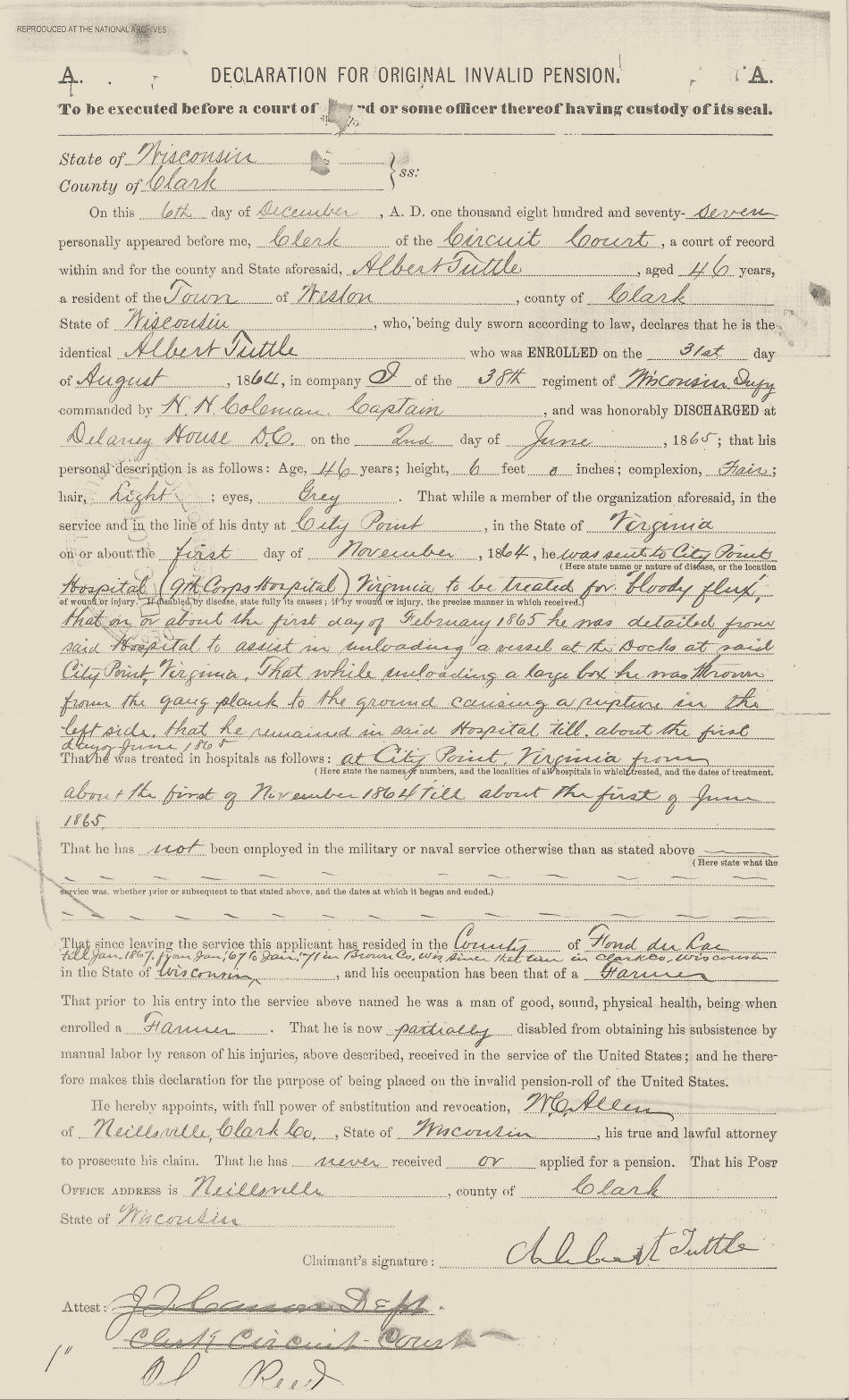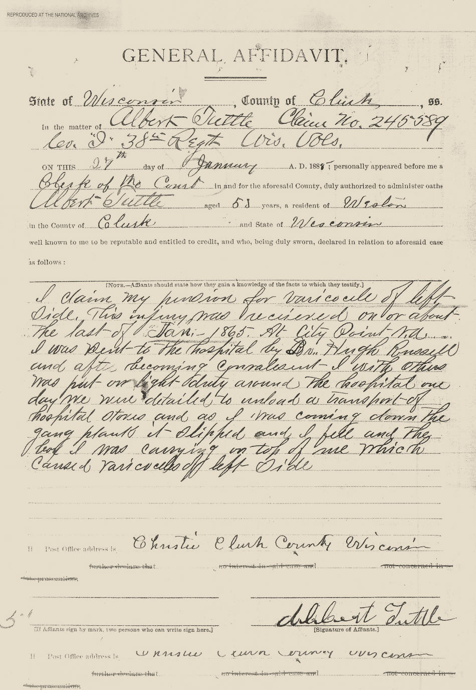 When he 33 yrs. old, Albert enlisted in the Civil War