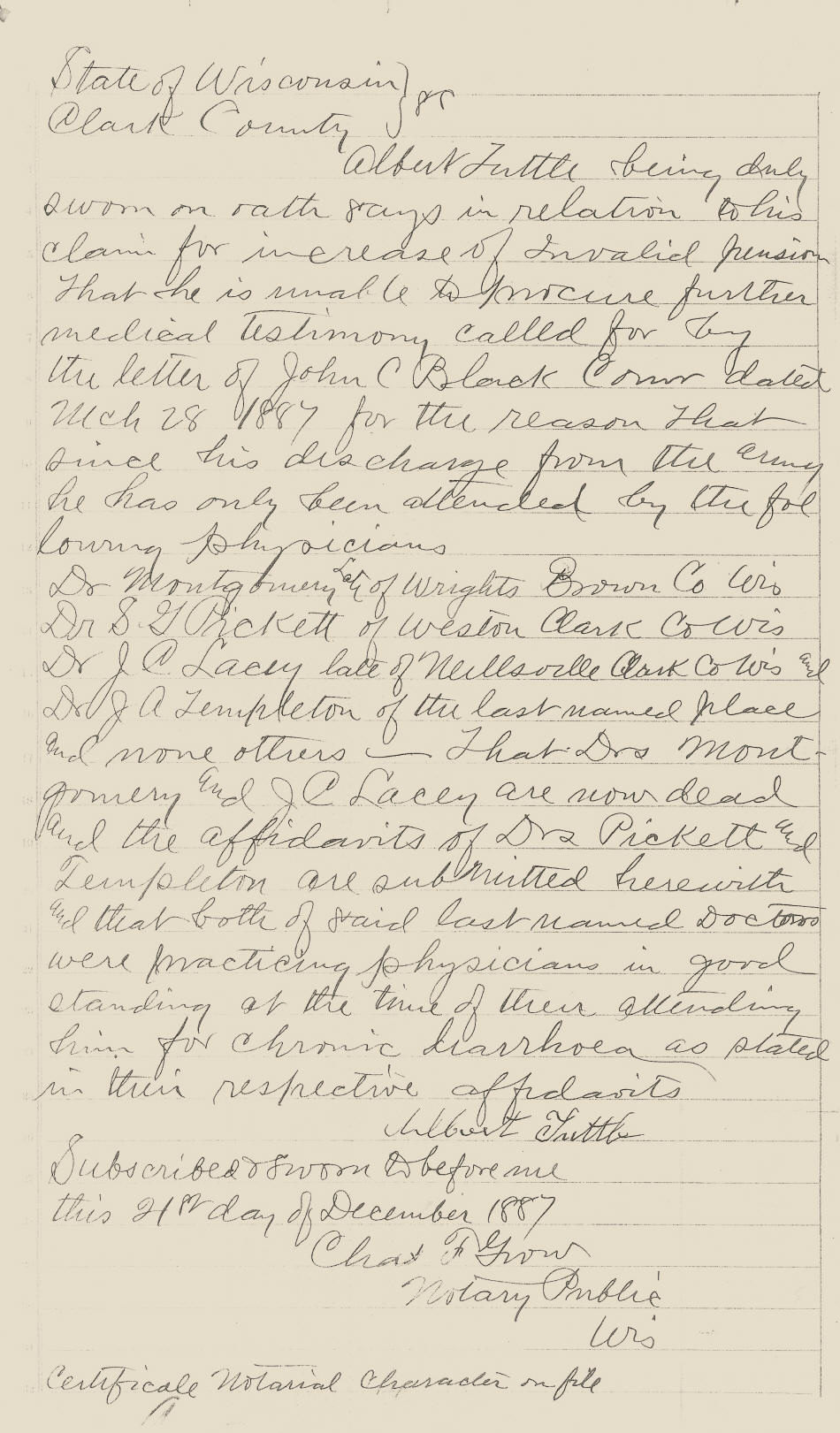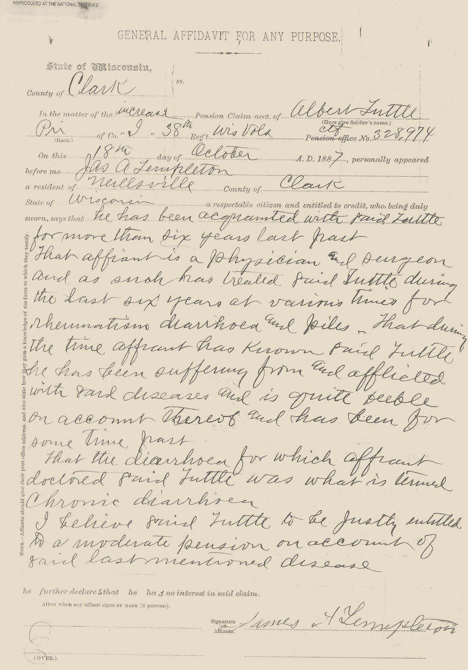 remainder of his life. In Jan 1867, the Tuttles moved from Fond du