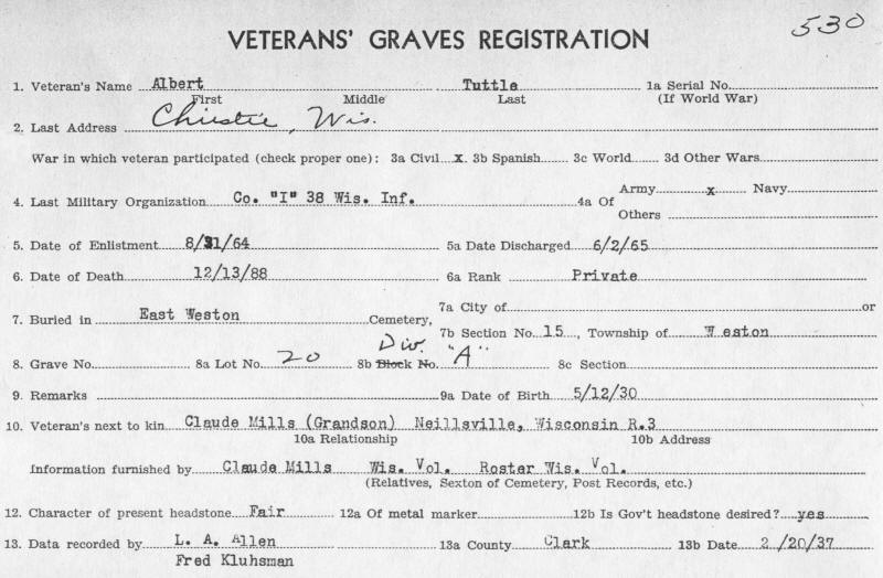 trained as a surveyor and a member of Co I, 38th Wis. Inf. He served along side