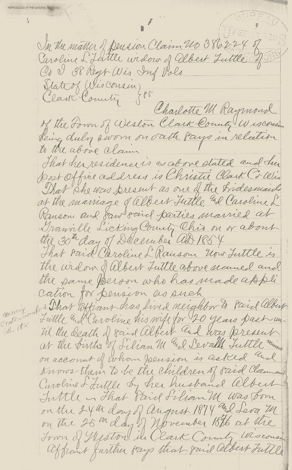 Caroline Ransom Tuttle Weston Twp., Clark Co.,
