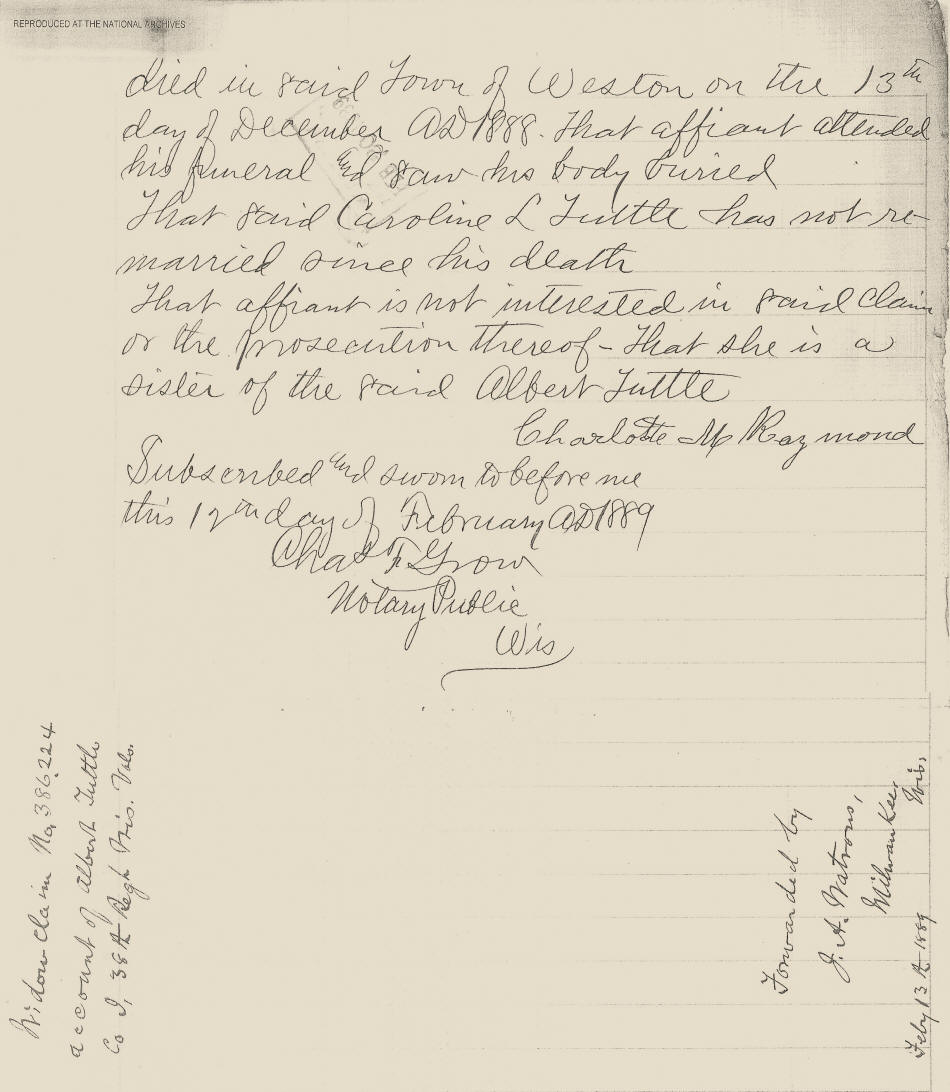 Tuttle, Carolina L. (m-in-law) white, female, born April 1835, age 65