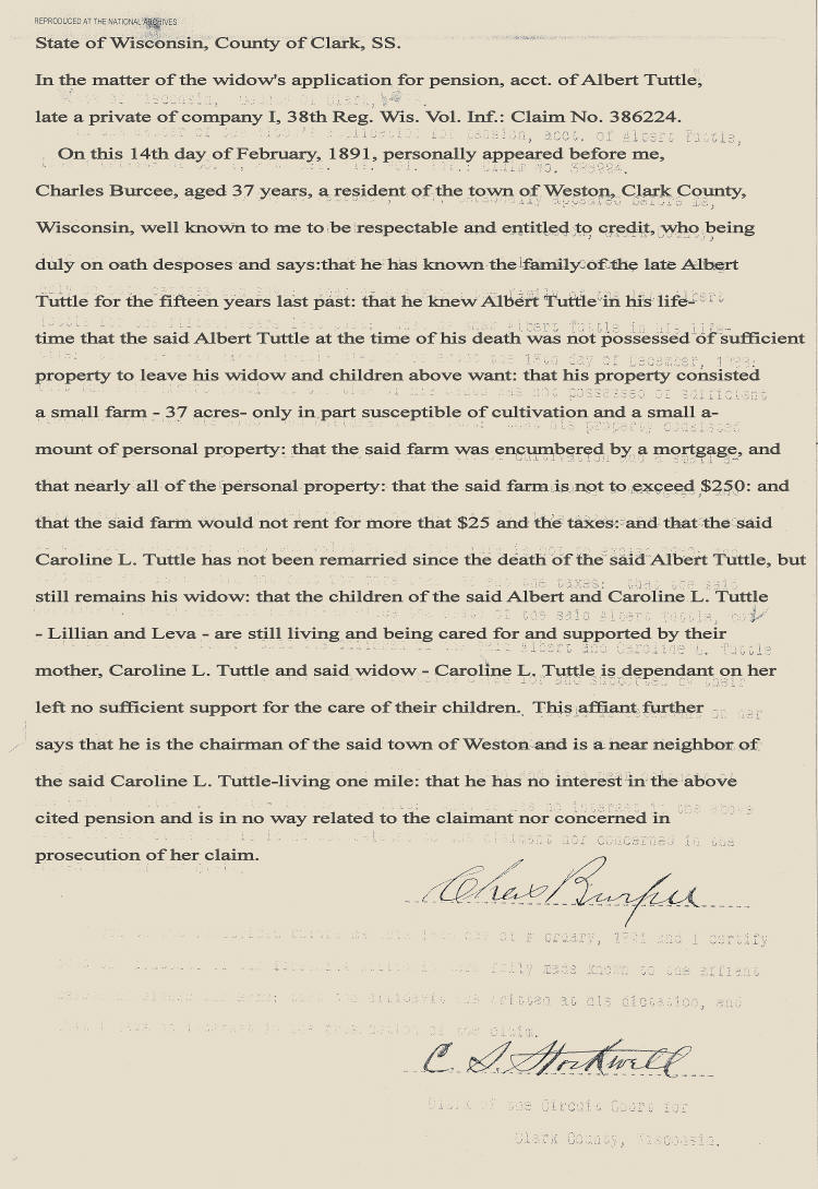 Bio: Tuttle, Albert--Widow's Pension Application