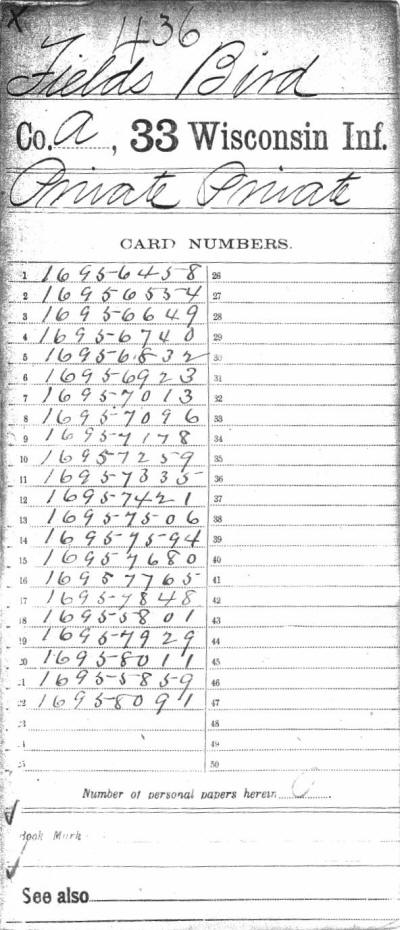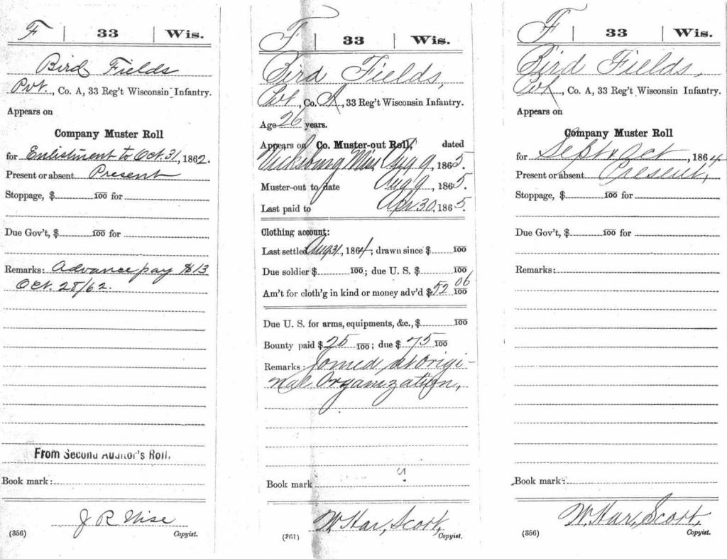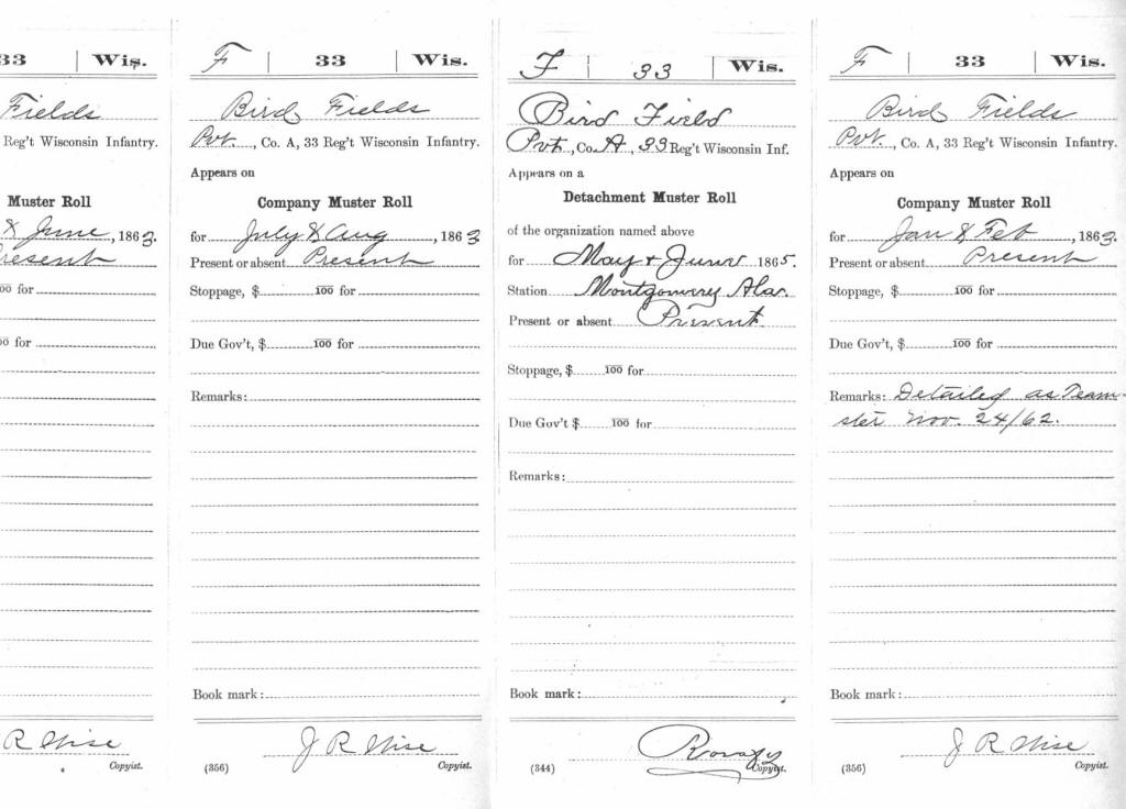 33rd WI along side his younger brother, Alfred. Bird died Aug. 30 or 31st, 1904 and is buried in the