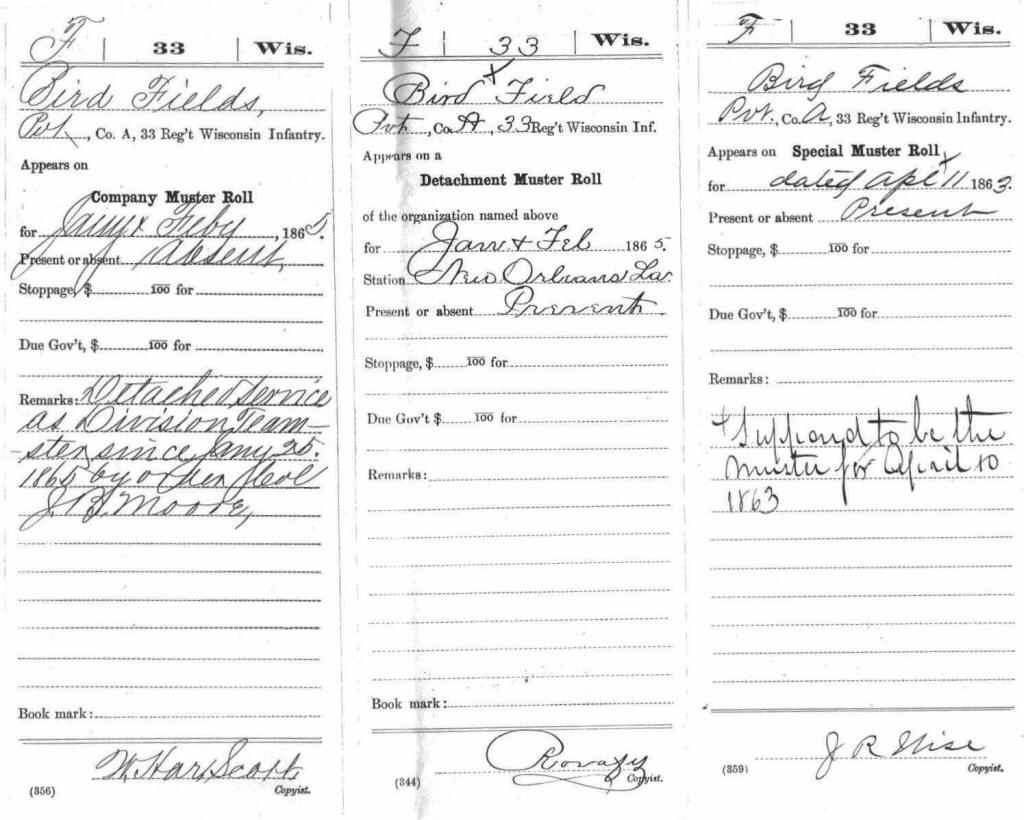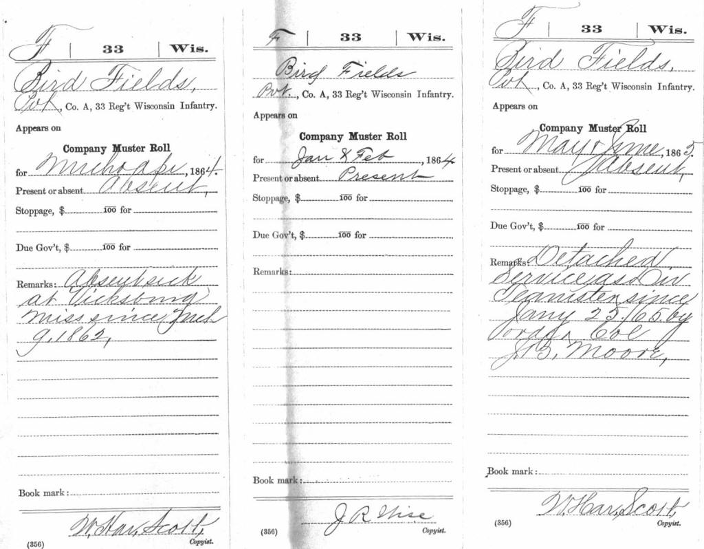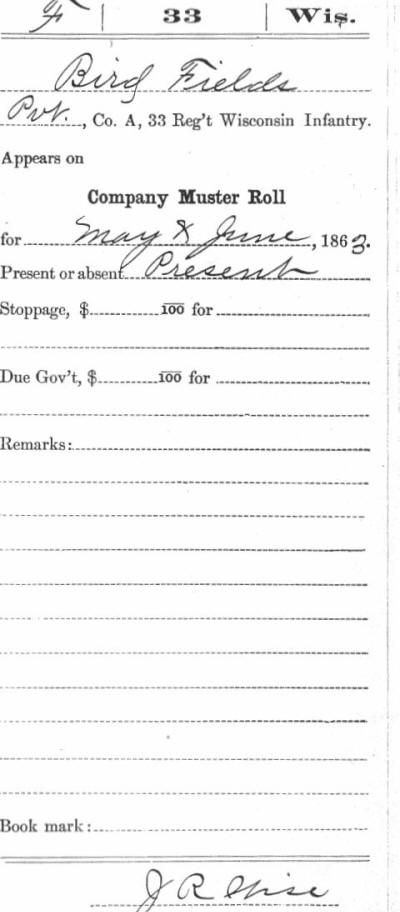 August,1862.Private Co. A-33rd Regiment, WI Volunteers. Discharged at Vicksburg,