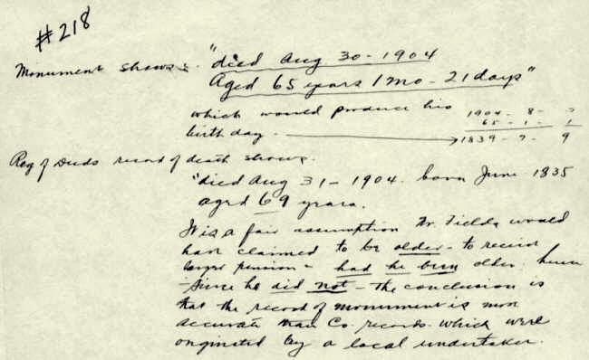 old. The reverse side of his VGR says, "It is a fair assumption Mr. Fields