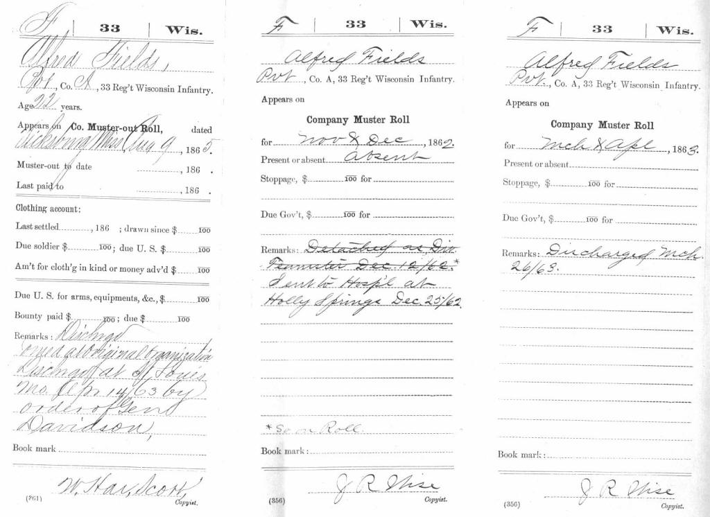 inscription , "Comrade". He fought as a private with Co. A, 33rd