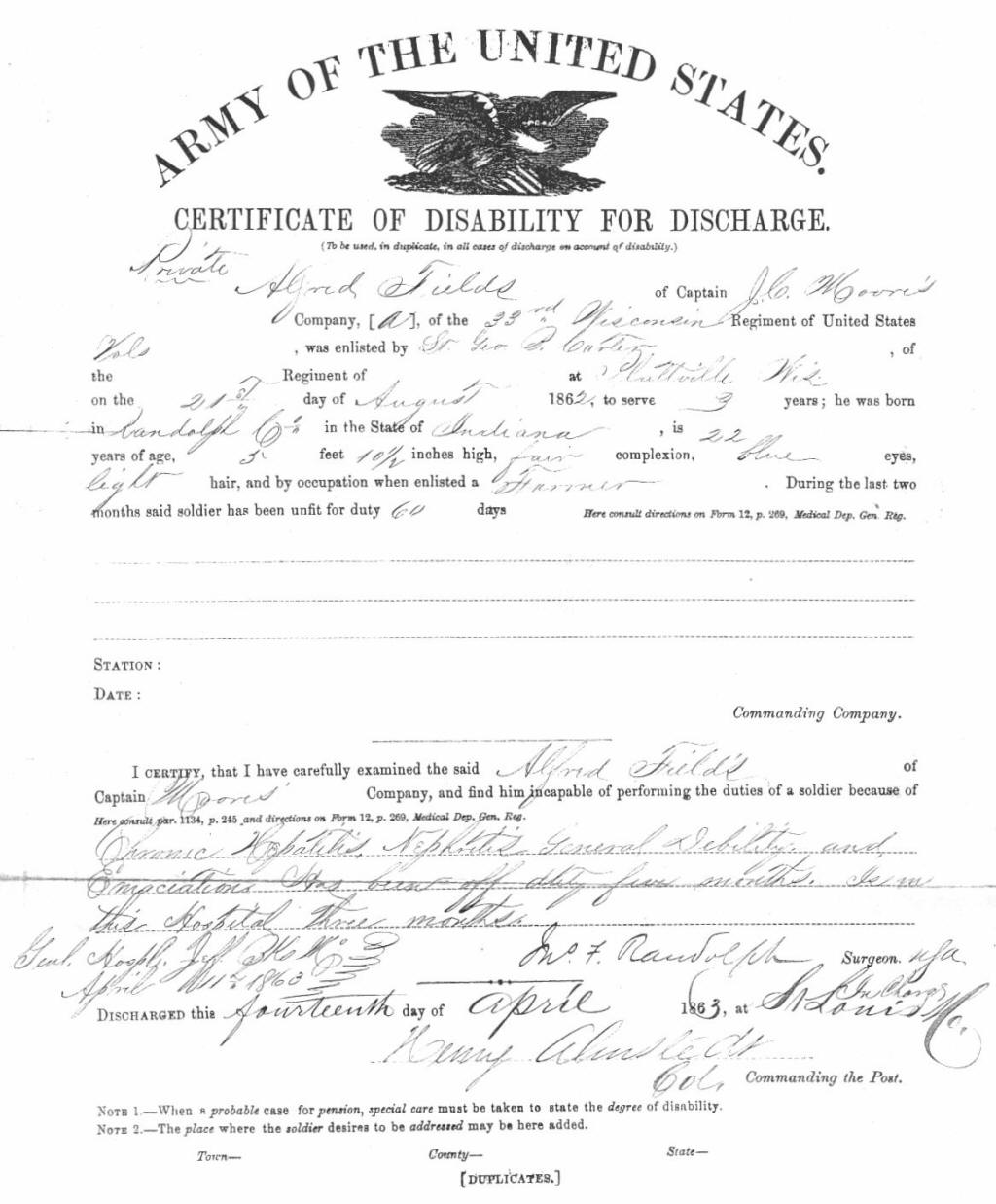 Wisconsin infantry along side his older brother, Bird. He enlisted as a resident