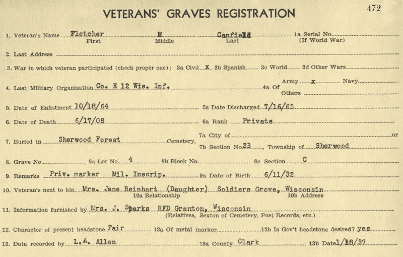 Canfield, was born October 23, 1867 in Viroqua, Wisconsin and died November 17,