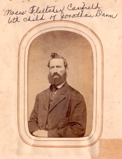 I happened to run across the above photographs of Moses Fletcher Canfield and Jonathan Dann Canfield in a box of old family photographs. Please use them as you like. Moses Fletcher (as notated) was the 6th child of my great-great grandfather, Jonathan Dann Canfield. – Doug Grundy |
