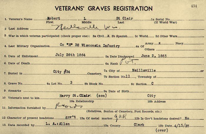 had no children. The St. Clair’s are all buried in the Neillsville City