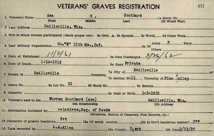 War and both settled in Clark County, Wisconsin afterward, engaging in the