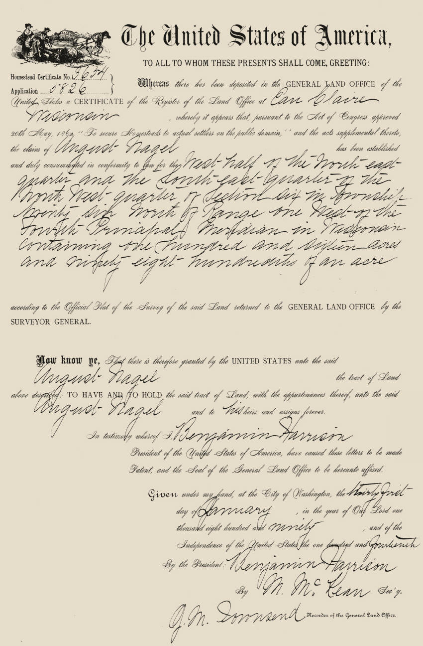 homestead claim in sec. 6, Loyal Twp. from the Land Office in Eau Claire. He
