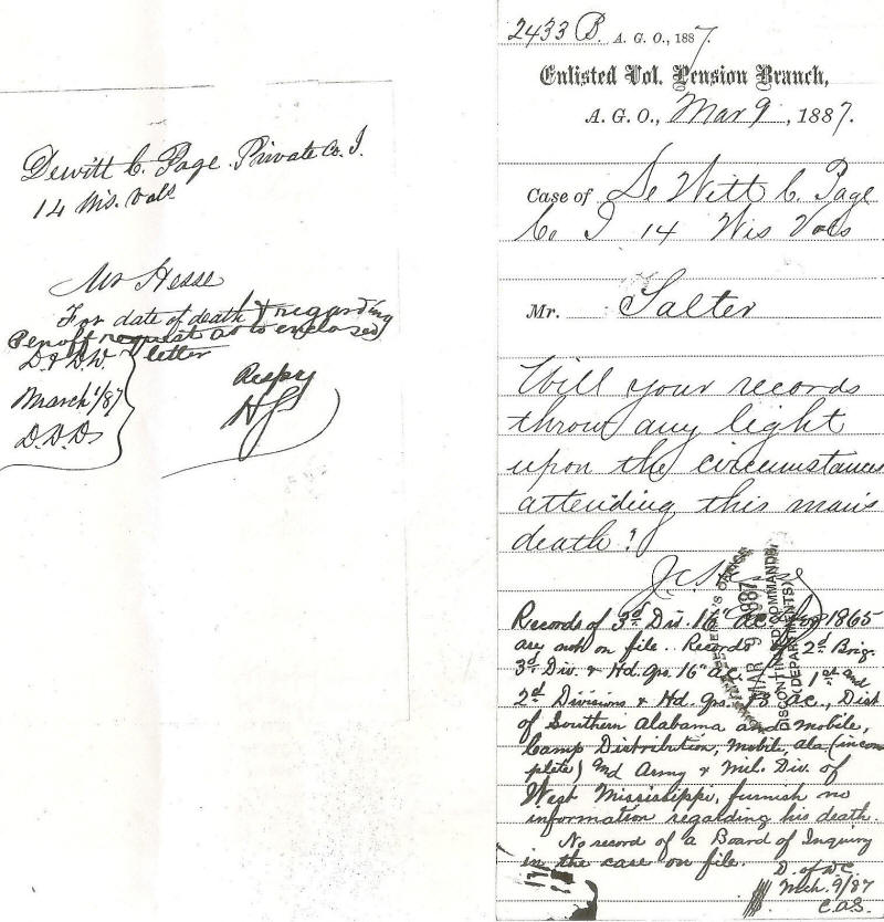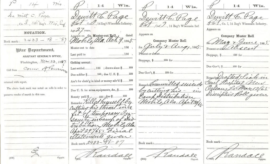late Captain of Co. "I", 14th Wis. Vols., who said it was supposed that Page