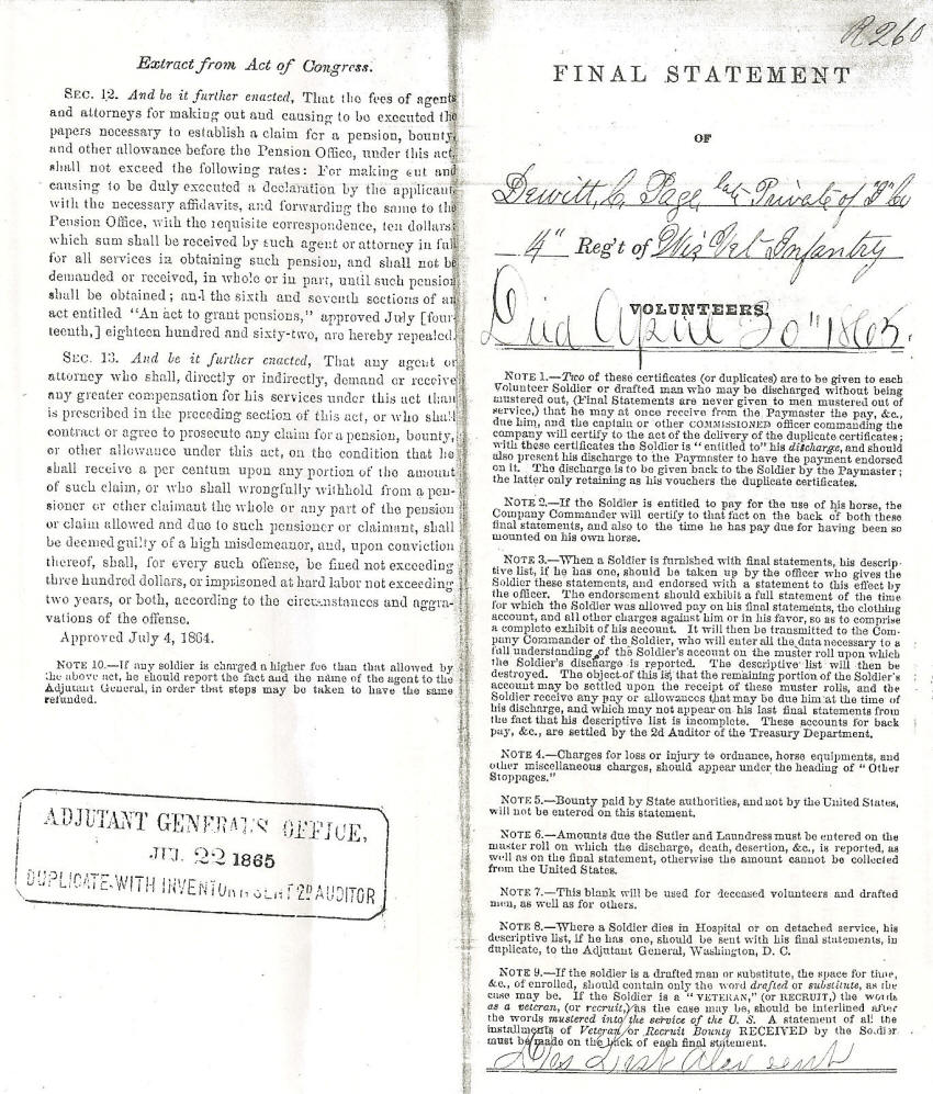 stoppages included 1 canteen, 1 haversack, 1 knapsack and 1/2 shelter tent. Military Records [1] [2] [3] [4] [5] [6] 1887 Commission of Revisions Inquiry [Part