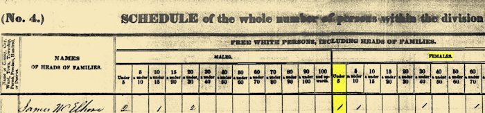 States Census, 1840 New Jersey Passaic Paterson in the family of James McElhose