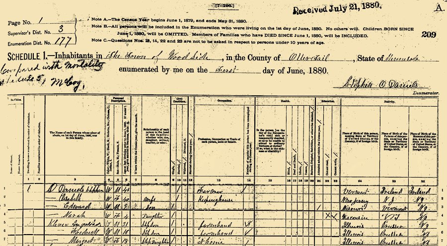 Edward O Daniels Woodside, Otter Tail, Minnesota 14 years 1871 Missouri White