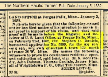 Land Office at Fergus Fallls, Minn., on Feb. 21st, 1882, vix:
