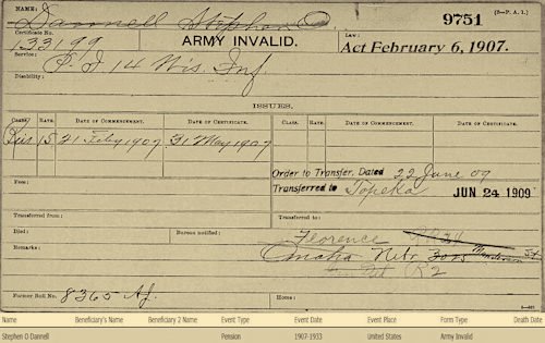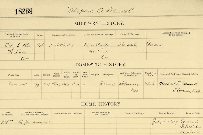 Stephen was born in Vermont. He was admitted to the Leavenworth Military Home at