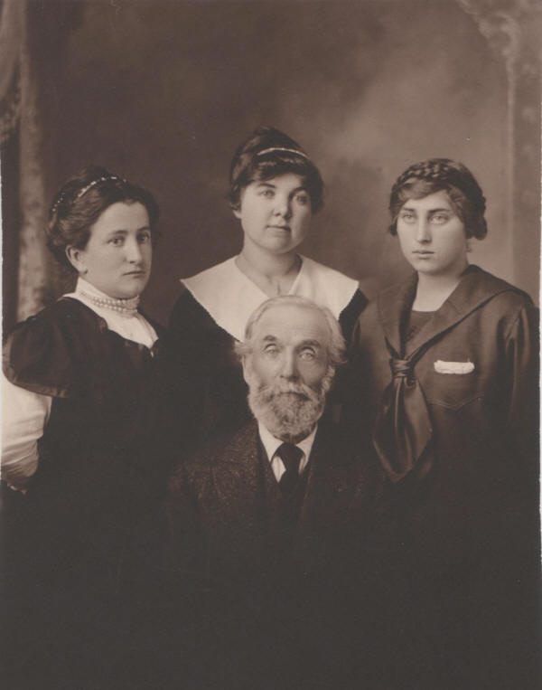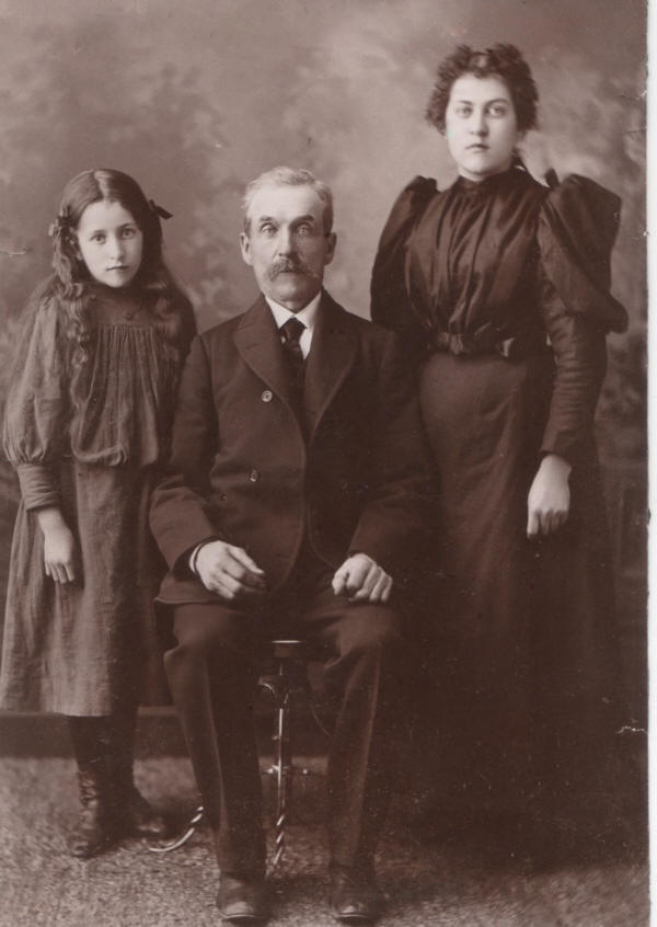 The first photo below is of John with his two youngest daughters Bertha and Elsie taken probably after the death of his wife in 1897. The second photo is several years later considering the age progression of Bertha (woman on far left). Neither photo is dated. Jennifer Castro