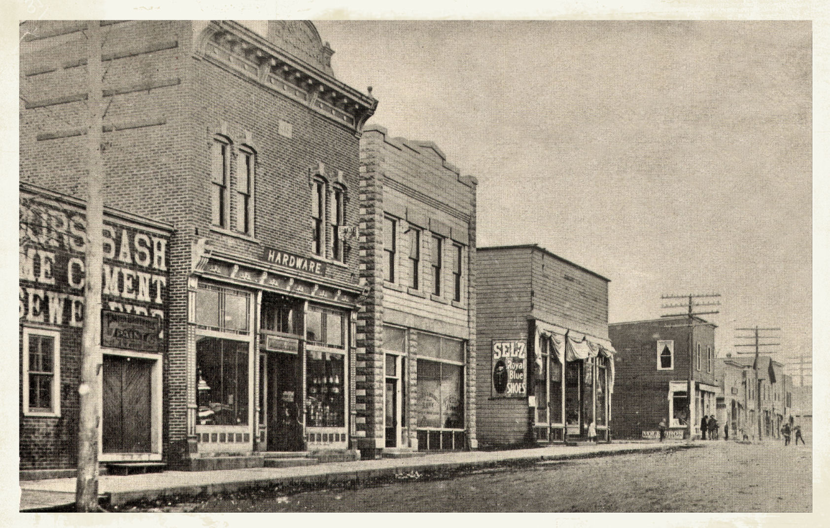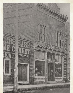 This former A. M. White Hardware store, with lodging rooms above was converted to a grocery store by John Drummond and sold to Adon J. Allard in 1925. It was located on Main Street, Greenwood, Wisconsin. [Enlarge] |
