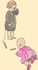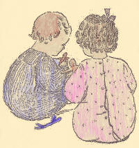 There was so little to go to that when all the chores was done we all went, even pa, and of course, the babies ‘cause there wasn’t anybody to leave them with. The little schoolhouse was quite full when we got there but we crowded in all together in one corner. A strange man was playin’ an organ and there was some singin’ by the few who knew the songs, but it was mostly by the man. Then another man got up and preached a little sermon. He said a good deal about "getting under the Blood," but I didn’t understand what he meant, and what was more nobody else seemed to just know either. I was tired and the lamps in front made me sleepy, and I was just beginning to wish I hadn’t come when, in looking around, I saw a strange little girl. I had heard that some strangers were stayin’ at the next farm to ours, but had forgotten about it, and this must be one of them, I thought. Some way, I couldn’t keep my eyes off from her; she was so different in every way from anyone I had ever seen before. I don’t know as you would exactly call her pretty, though it seemed to me then that she was the most beautiful little girl in the world, and her face, to me, still is the sweetest one I know. She had a small face with small features and the sweetest mouth! But it was her eyes that made her beautiful to me, -- the loveliest eyes that I had ever seen, -- they made me think right away of my fir trees, some way, they were so dark and quiet and gave me that same feelin’ of bein’ comfortable and as though I would like to be near them. And then she caught my eye and smiled at me and my throat went tight together and my heart gave a big thump, ‘cause I never in all my life had had anyone look at me with eyes so kind, or smile at me in a way that looked as though she liked me! |
