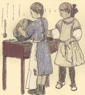 After talkin’ and singin’ were over she came to me and said in a shy way, "What is your name, little girl? I am Elizabeth." And she told me where she was stayin’, and when I told her that I lived on the next farm she asked me to come and see her. I thought of her every day and dreamed of her at night, but we were just in the midst of hayin’ time and I knew I could not get time to go even to the next farm. It was several days after the meeting at the schoolhouse, and I was workin’ one morning as busy as could be, for every-thing seemed to be goin’ wrong. I couldn’t make the fire burn, and baby was more than usual fretty and little Katy had just fallen and bumped her nose and was cryin’, and I was afraid dinner would be late and then pa would be awful mad, and I was ‘most ready to cry myself, when I looked up and saw Elizabeth comin’ in the gate. She knelt right down by little Katy and clean and sweet as she was, she took that dirty little thing in her lap and comforted her and wiped away the blood and tears, talkin’ to her all the time until Katy was soon laughin’ instead of cryin’. Then Elizabeth came in where I stood - so glad to see her and yet somehow, feelin’ the difference between us so plain that I couldn’t say a word. But she came in and said, "I have been waiting for you to come and see me, but when you didn’t come Mrs. Smith said you were probably busy, so I came over to help you if I could. What are you doing?’’ I told her what time I was a-havin’ to get dinner and she said sort o’ laughed and said, "Well, I can help;’’ and she went at the fire so that the potatoes began bubblin’ and I begun to feel better right away. Ma came hurryin’ in pretty soon and looked surprised enough to see a strange little girl settin’ our table and talkin’ and laughin’ as though it was fun. And I wished you could have seen pa’s face when he came stormin’ in as usual and caught sight of Elizabeth. She stayed to dinner with us, and it was the first meal I ever remember that pa never swore once! We all noticed that, I can tell you, and it sort o’ awed us. After they had all gone back to the fields again Elizabeth stayed and helped me wash the dishes, and it was the first time I ever really had any fun. Elizabeth was so quick that it didn’t take us any time to do work, even though she washed everything and helped me to scrub the little forks afterward, and tided up the house till it didn’t look like the same place. But with it all there was something funny that she said or did, or something so new and different that I watched her, half-laughin’ all the time -- and not a baby cried all the afternoon. I s’p’ose most little girls have lots of fun and laugh and play, but do you know, ma’am, that was the first time any little girl had ever laughed and talked with me -- the first time I had ever played, although you couldn’t rightly call it play, either, only it was more like it than anything I had ever known before. When Elizabeth went home that afternoon we all followed her to the gate and waved our hands to her till the turn in the road hid her from sight. When ma came home that night and saw us all nice and calm, with a clean kitchen and the babies happy as kittens playin’ with some paper dolls that Elizabeth had cut out, a new, soft light came into her eyes that I never seen before, but it made her look kind o’ rested and pleased.