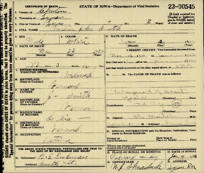 Robert Nelson Smith was residing in Wheatland, De Soto, Bad Axe Co., WI at the time of his enlistment in the Union Army (16 July 1861 with 6th Wisconsin Infantry).