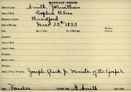 Marriage #2: Mary Smith 24 September 1793, Newbury, Orange, Vermont, United States, wife of Wyman W. Smith Birth: 5 April 1771, Danvers, Essex, Massachusetts Bay, British Colonial America Death: 28 Dec. 1828 at the age of 58 (1770)
