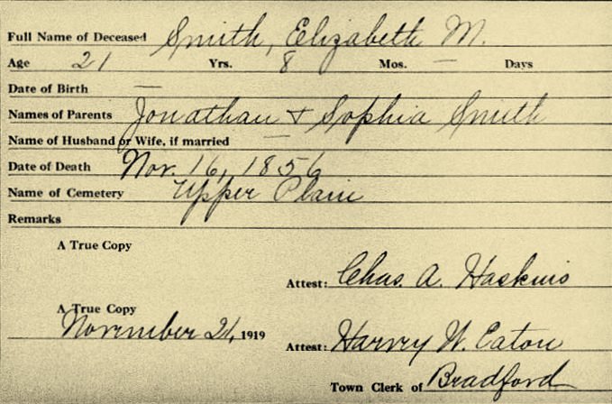 Obit: Smith, Elizabeth M. (1835 - 1856)